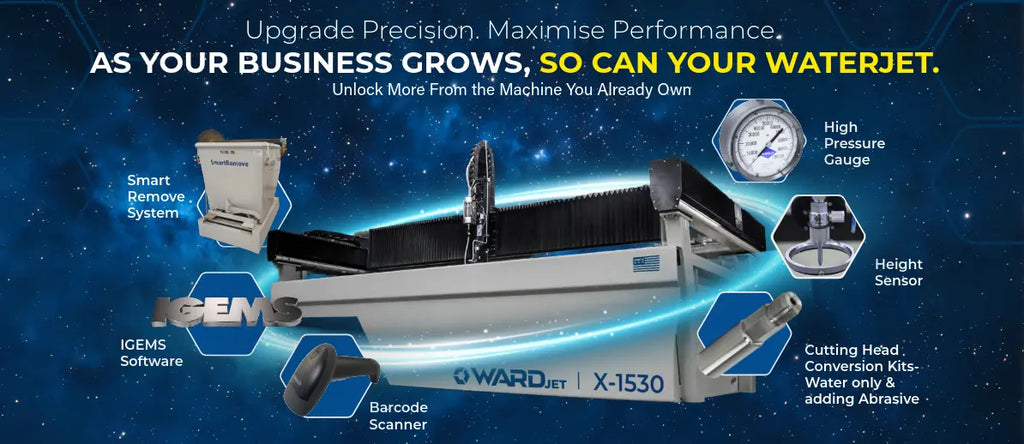 WARDJet machines are engineered with flexibility in mind. Many of our waterjets are designed to support factory-approved upgrades that enable new applications, increase throughput, and help reduce production bottlenecks.